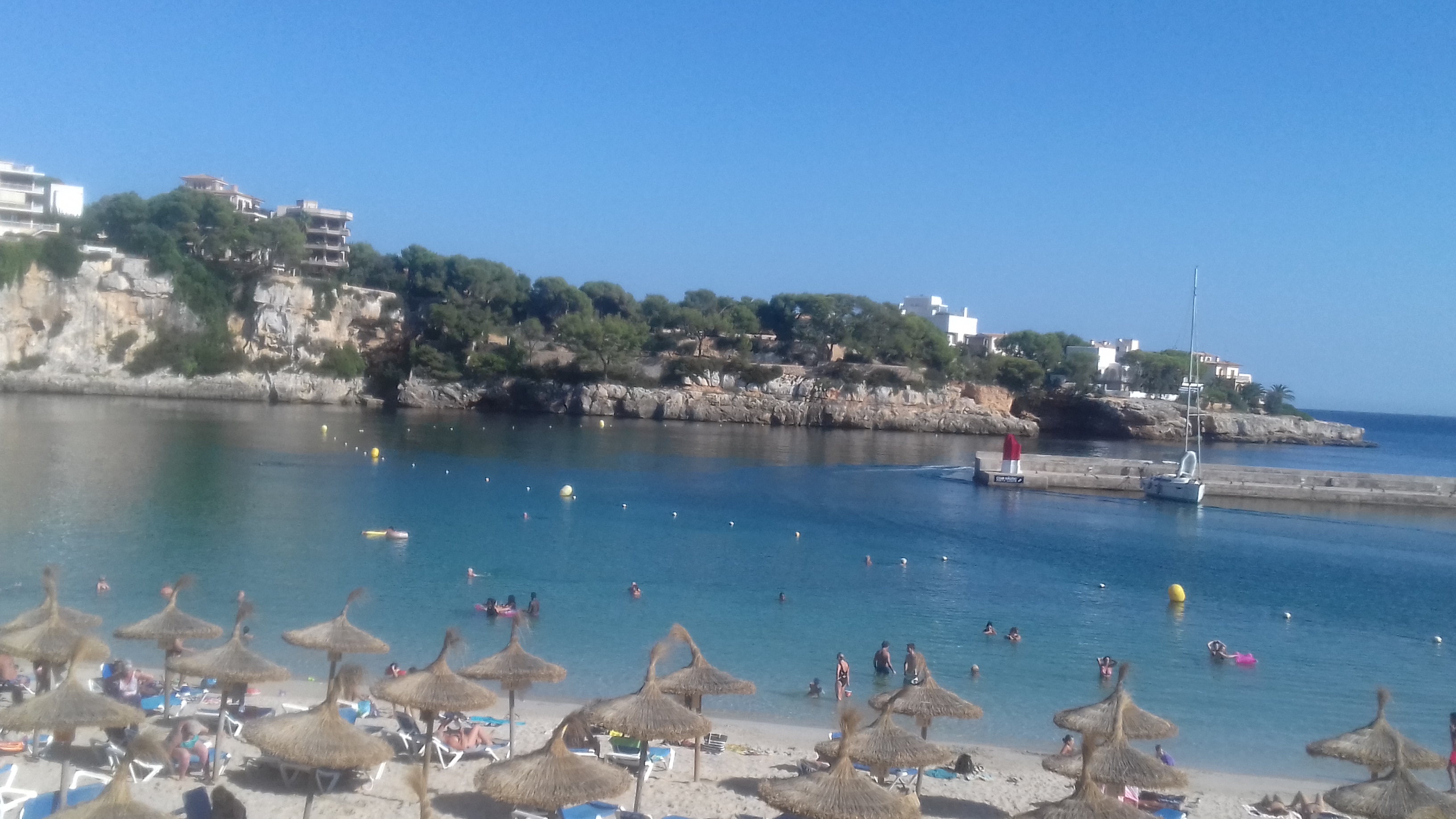 Do Palmy doleciałam około 13. Po nocy spędzonej na lotnisku nie byłam zbyt wypoczęta, dodatkowo przywitał mnie 30-stopniowy upał. Nie zważając jednak na zmęczenie znalazłam autobus jadący do S’illot i ruszyłam do miejsca docelowego. Podróż trwała ok. godziny. Po drodze nie mogłam się napatrzeć na cudowne palmy (tak, mam do nich słabość :D). Po dojechaniu na miejsce i zameldowaniu się w hostelu udałam się na plażę i to tam spędziłam swoje pierwsze popołudnie na Majorce.
